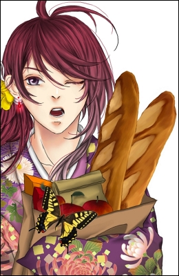 「異国迷路のクロワーゼ」みたいに洋物と和物が同じ画面に映ってるのってすごく、好きです。だから鎌之介(仮)みたいな(早くいい名前付けてやれ)和装してんのに何でフランスパン持ってんの?なのが好きなんだ、いいよね・・・!